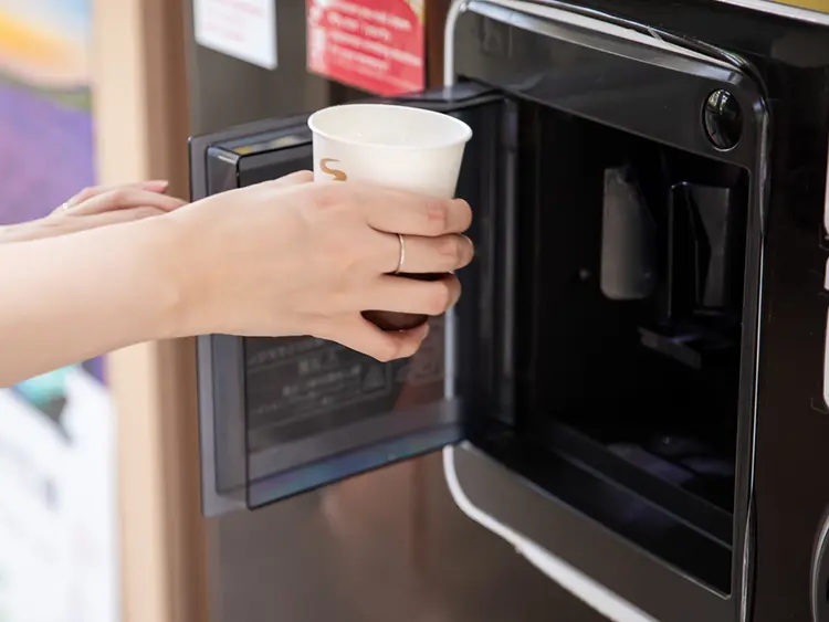 カップ式自動販売機を設置しており、淹れたて感覚のコーヒーやドリンクを気軽にお楽しみいただけます。